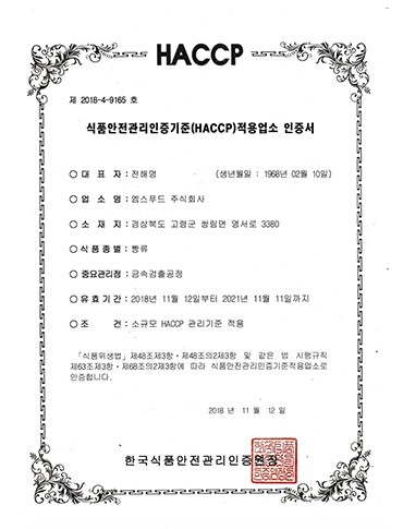 HACCP 인증서