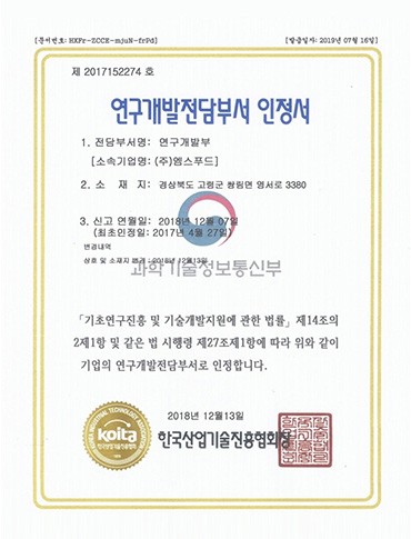 연구개발전담부서 인정서